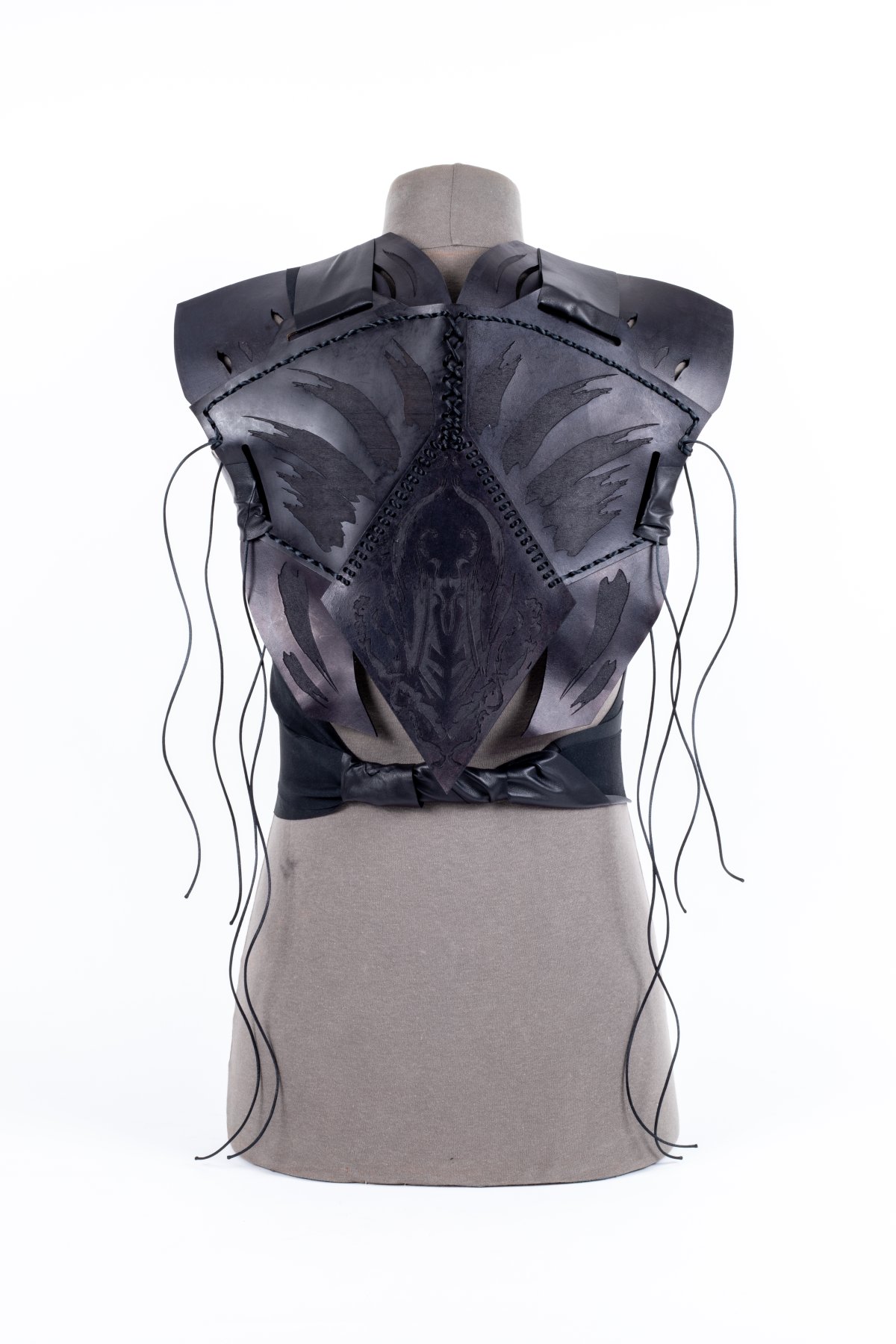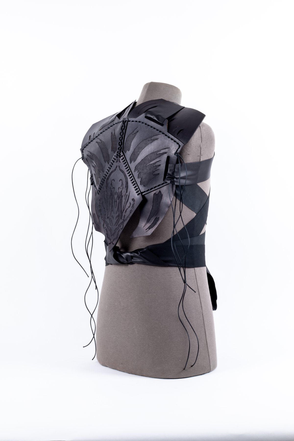 A range of techniques were combined to create these artefacts all made from reused leather off-cuts.